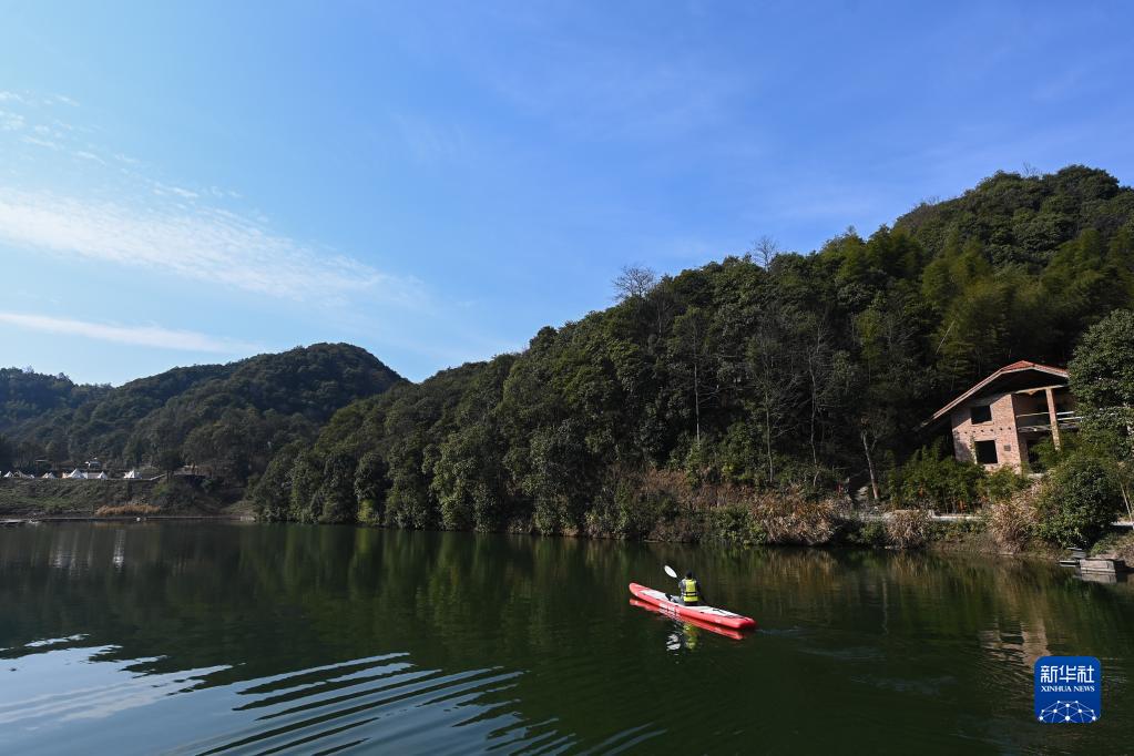 2月28日,在杭州市臨安區玲瓏街道前山村51Camp營地,負責人丹裕在劃槳板。