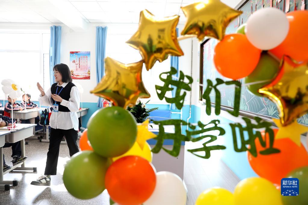 3月1日,鞍山市臺安縣實驗學校的老師在課堂上為學生們講授“開學第一課”。