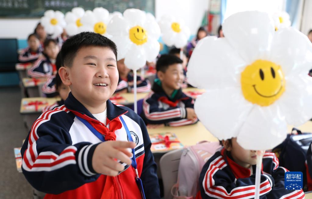 3月1日,一名鞍山市臺安縣實驗學校的學生在“開學第一課”上和同學們分享假期經歷。