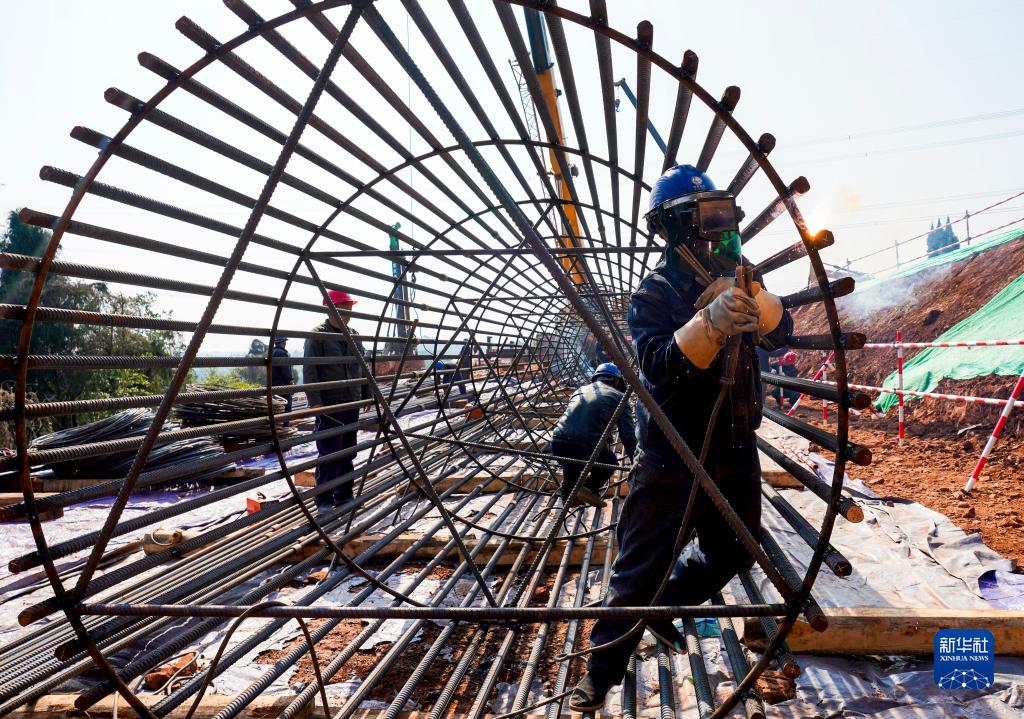 2月26日,重慶市潼南區小渡鎮川渝1000千伏特高壓交流工程(重慶段)施工現場,工人在進行焊接作業。
