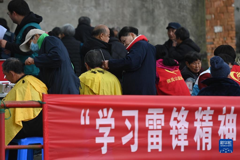 3月1日,志愿者在寧波市奉化區錦屏街道城西岙村免費為村民提供理發等民生服務。