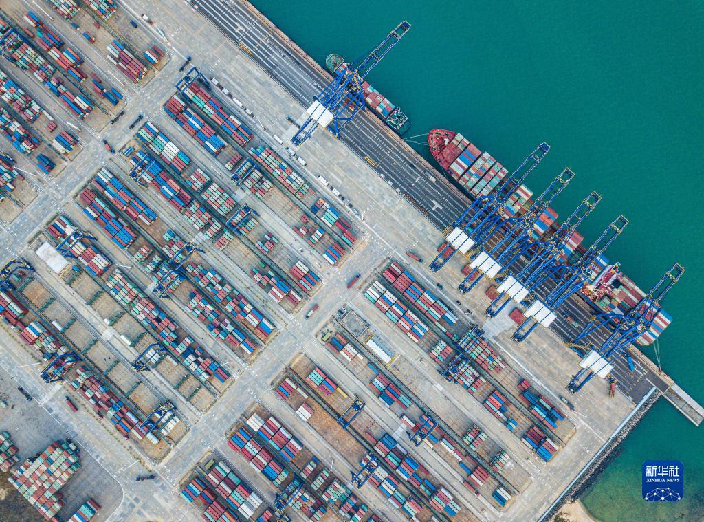 在環新英灣地區拍攝的洋浦國際集裝箱碼頭(無人機照片,2月28日)。