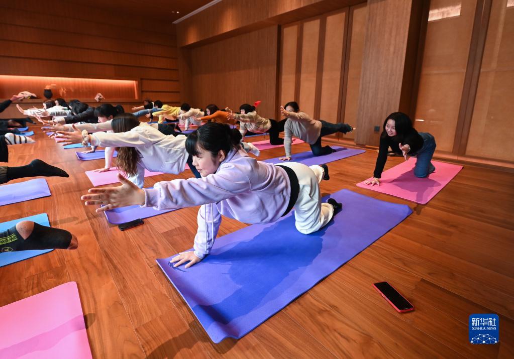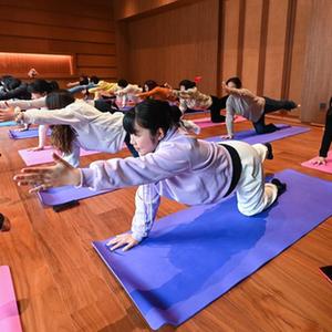 3月1日在婦女節主題活動現場拍攝的瑜伽體驗課活動。