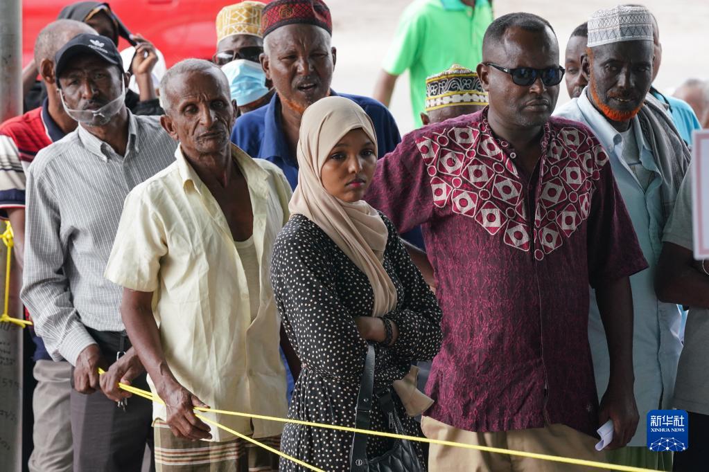 2月28日,在吉布提首都吉布提市貝爾蒂醫院,前來就診的患者和家屬在排隊等待。
