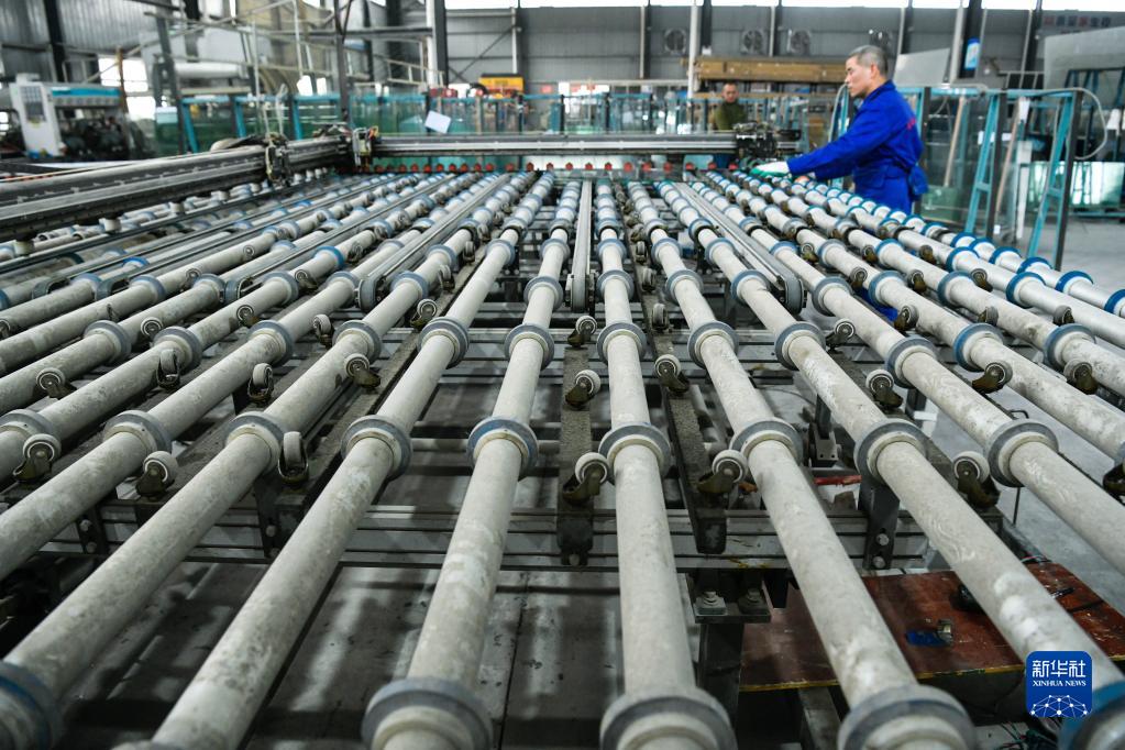 工人在貴州省天柱工業園區一家玻璃生產加工企業加工玻璃(2月28日攝)。