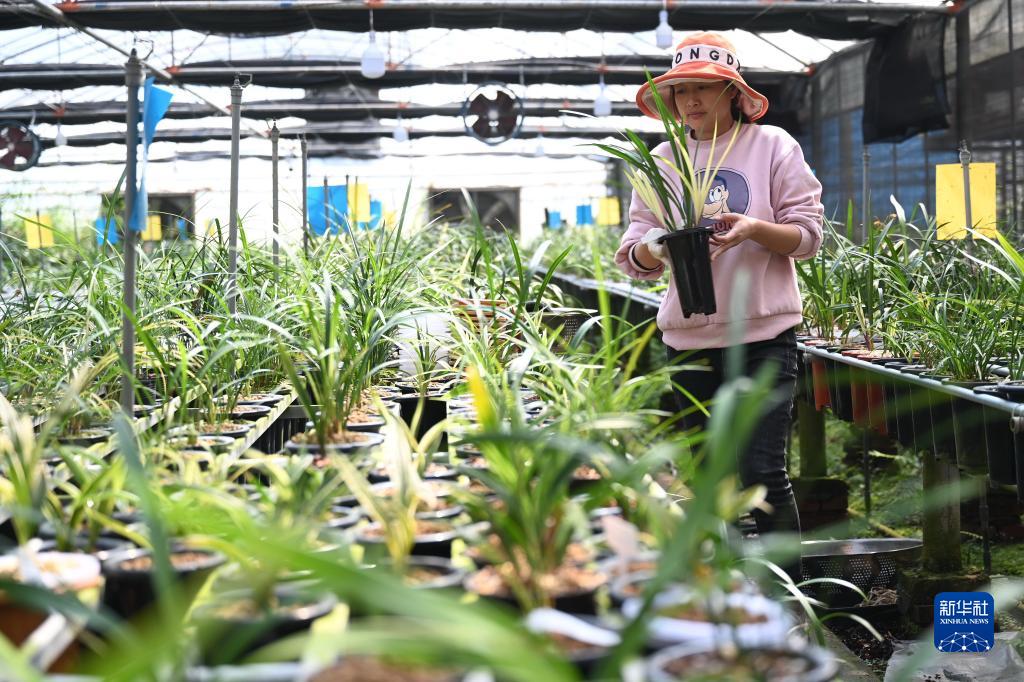 3月1日,南靖縣的“青心蘭園”女工楊紅英進行蘭花翻盆整理。