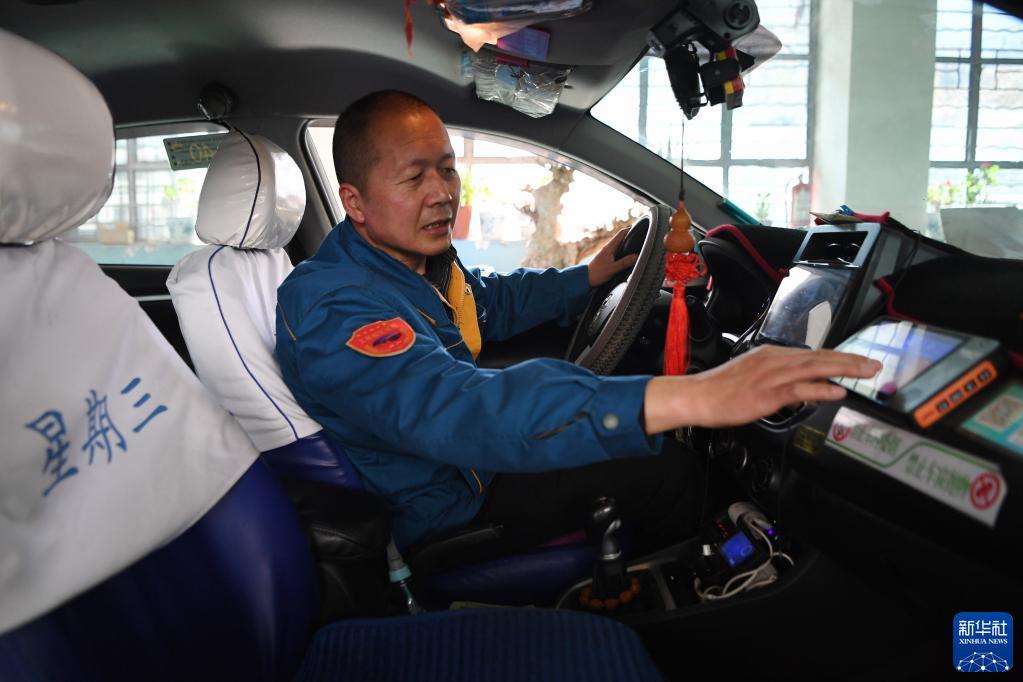 強漢紅在出車前檢查車內設備(3月1日攝)。