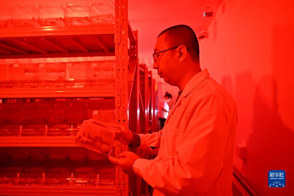 在中農熊蜂繁育基地,工作人員查看繁育車間內的蜂盒(3月1日攝)。