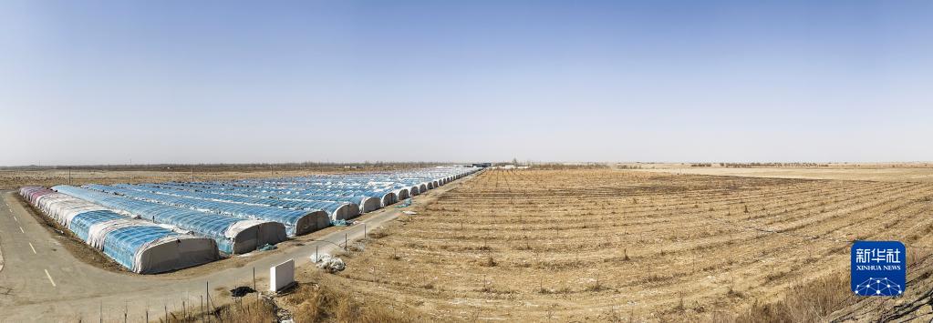 這是和田縣塔瓦庫勒鄉辣椒產業園(3月1日攝,手機全景照片)。