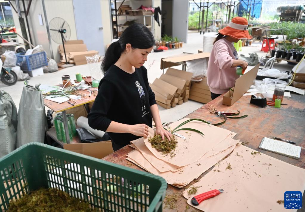 3月1日,在漳州南靖縣的“青心蘭園”,工作人員在打包蘭花準備發往各地。