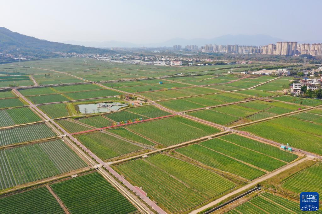 這是漳州圓山水仙花發展有限公司的水仙花種植基地一角(2月28日攝,無人機照片)。