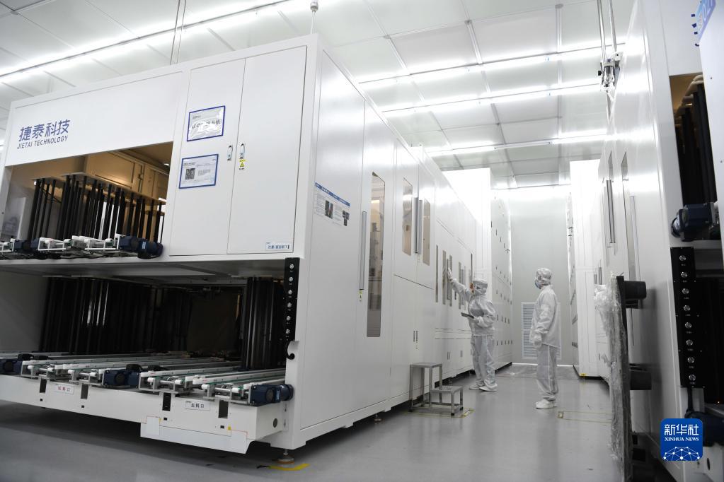 3月1日,工作人員在“頂山—汊河”跨界一體化發展示范區的一家太陽能電池片企業生產線上忙碌。