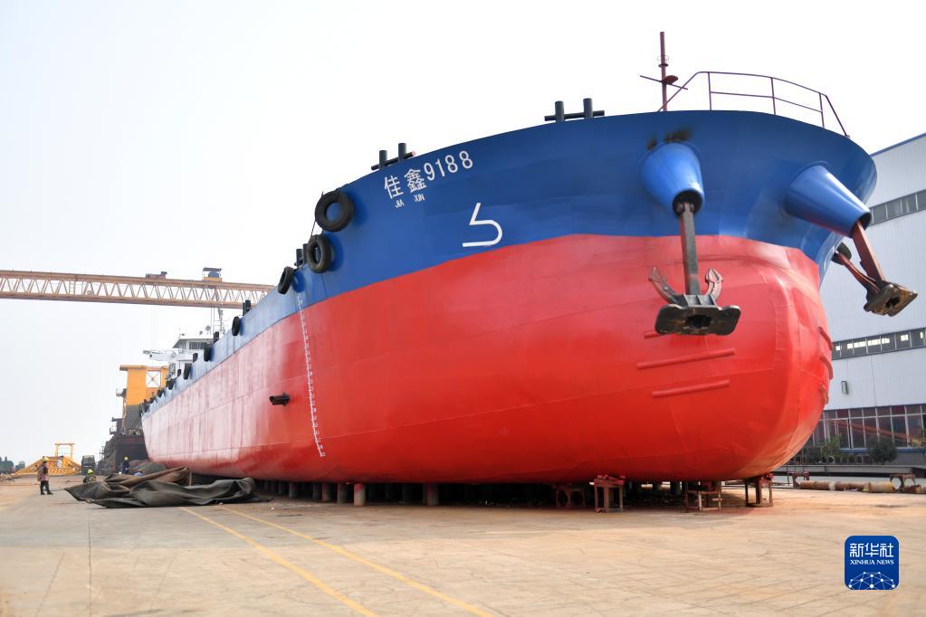 這是3月2日在沅江市湖南桃花江游艇制造有限公司拍攝的貨運船。