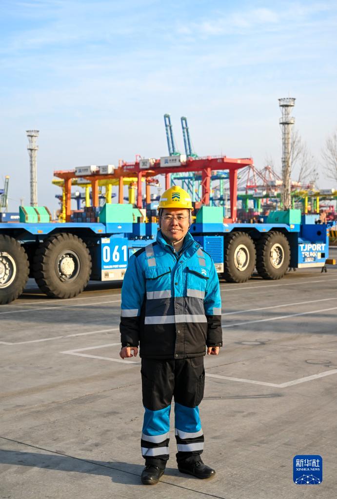 這是2月6日在天津港全物聯網集裝箱碼頭拍攝的全國人大代表成衛東。