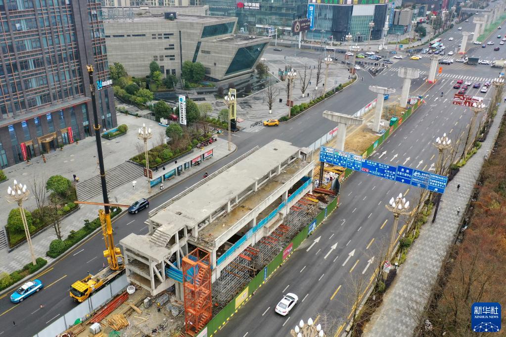 這是T2線金朱東路站(3月3日攝,無人機照片)。