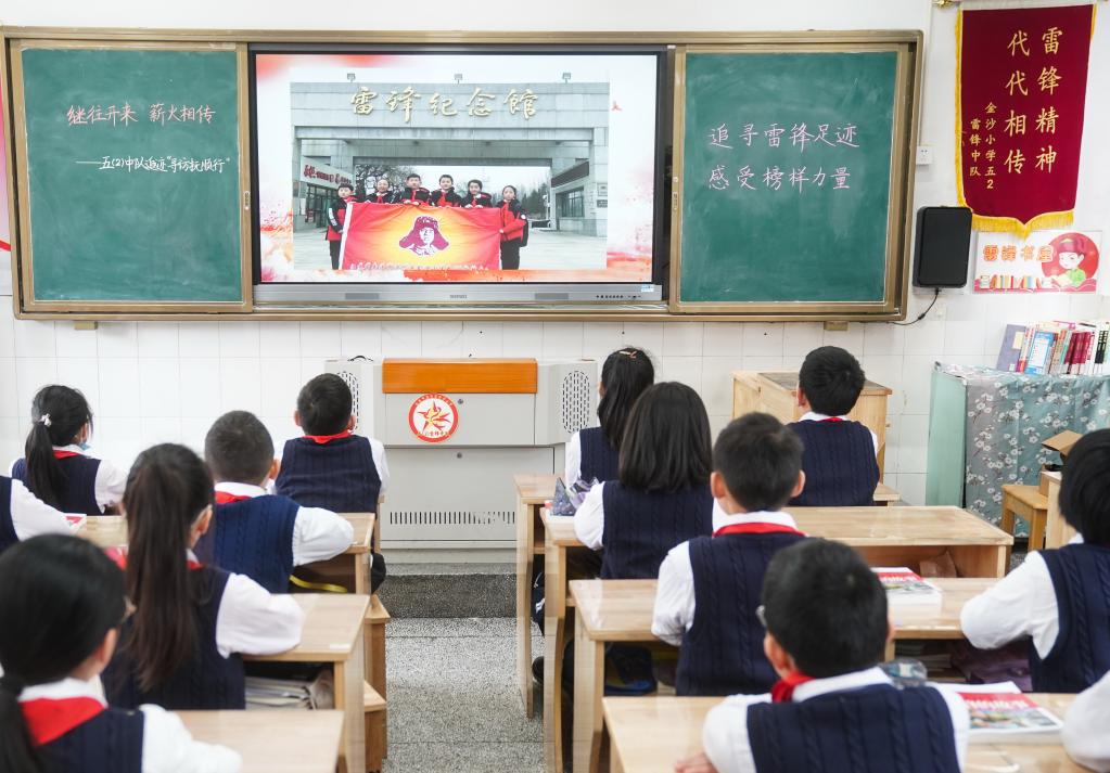 2月24日,五(2)雷鋒中隊的孩子們分享師生代表在雷鋒精神發祥地遼寧撫順開展“尋根之旅”的經歷。