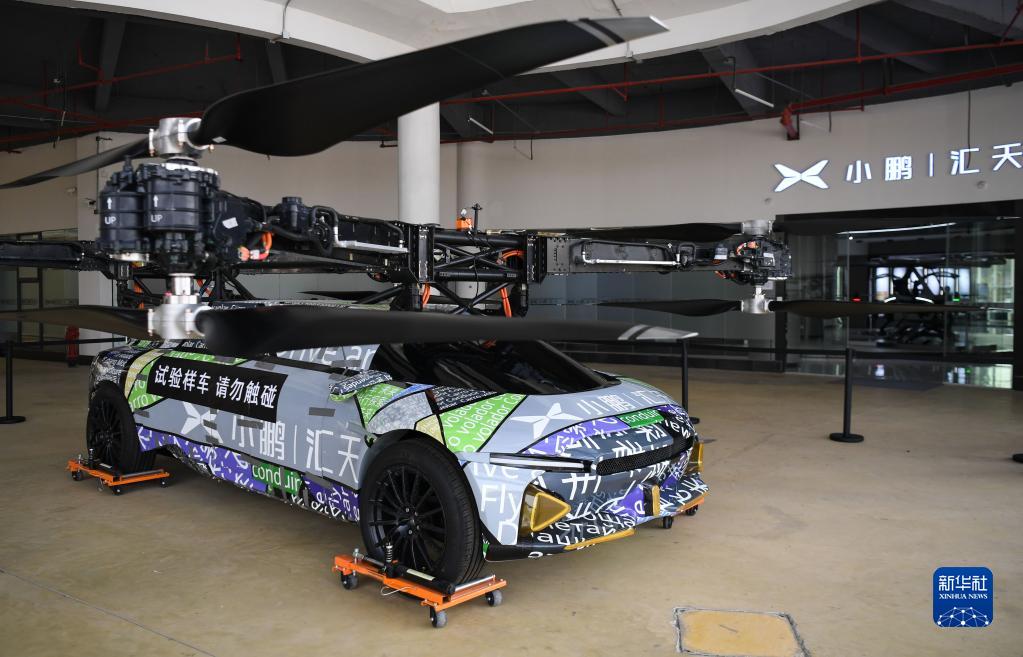 在廣州市番禺區小鵬匯天總部現場展示的飛行汽車試驗樣車(2月24日攝)。