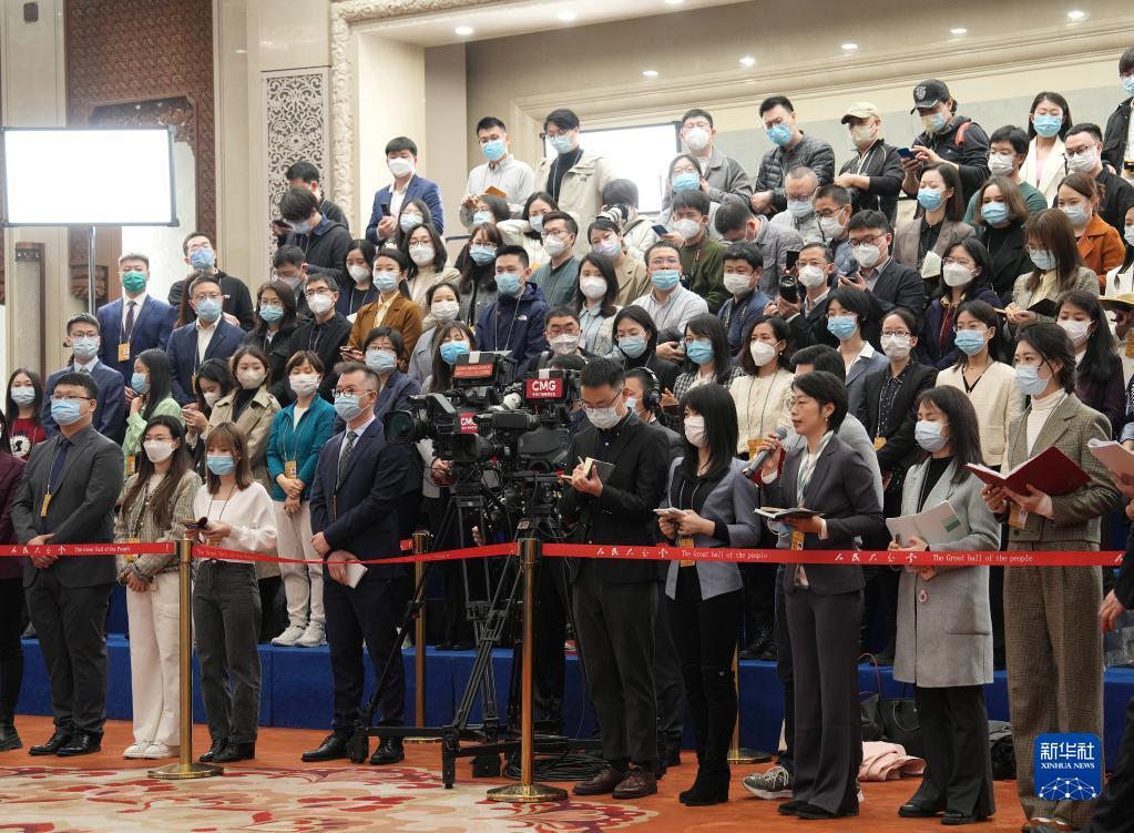 3月4日,全國政協十四屆一次會議首場“委員通道”集體采訪活動在北京人民大會堂新聞發布廳舉行。這是記者在采訪。