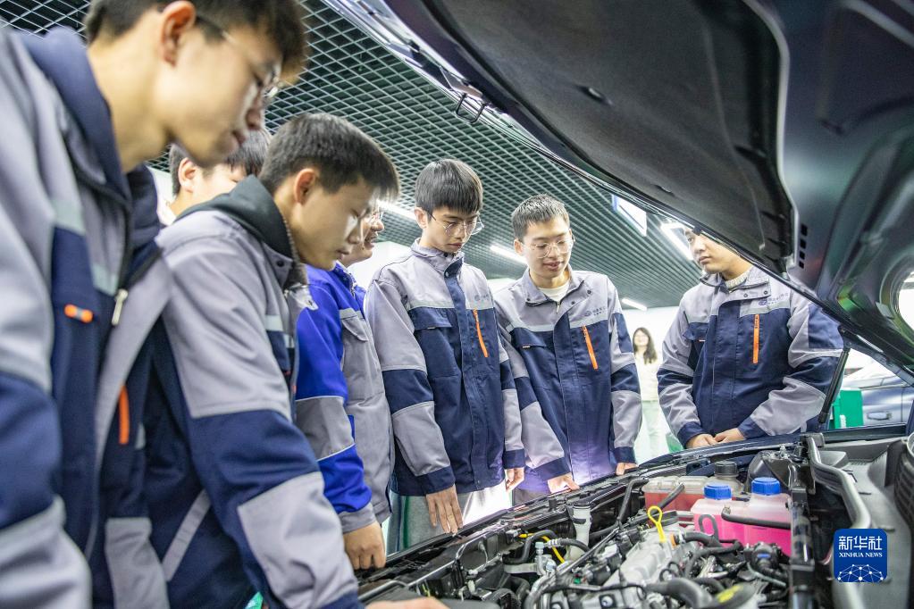 2月22日,在重慶城市職業學院“陳志軍汽車維修工國家級技能大師工作室”,學生們在老師的帶領下學習新能源汽車維修。