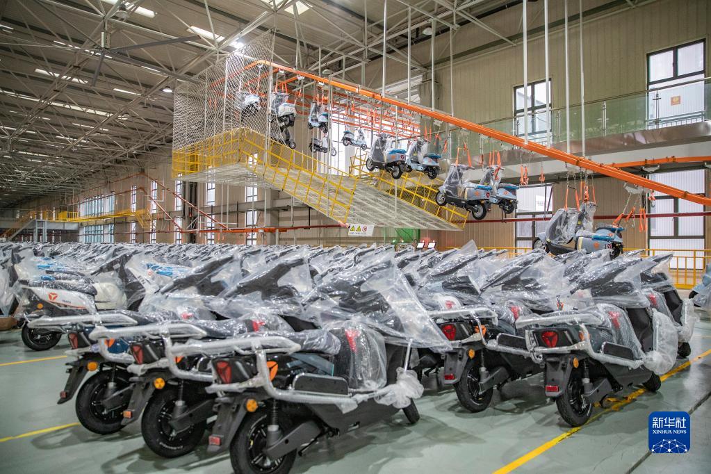 2月22日,在雅迪科技集團重慶永川電動車生產基地,智能化運輸線將成品電動車運往倉庫。