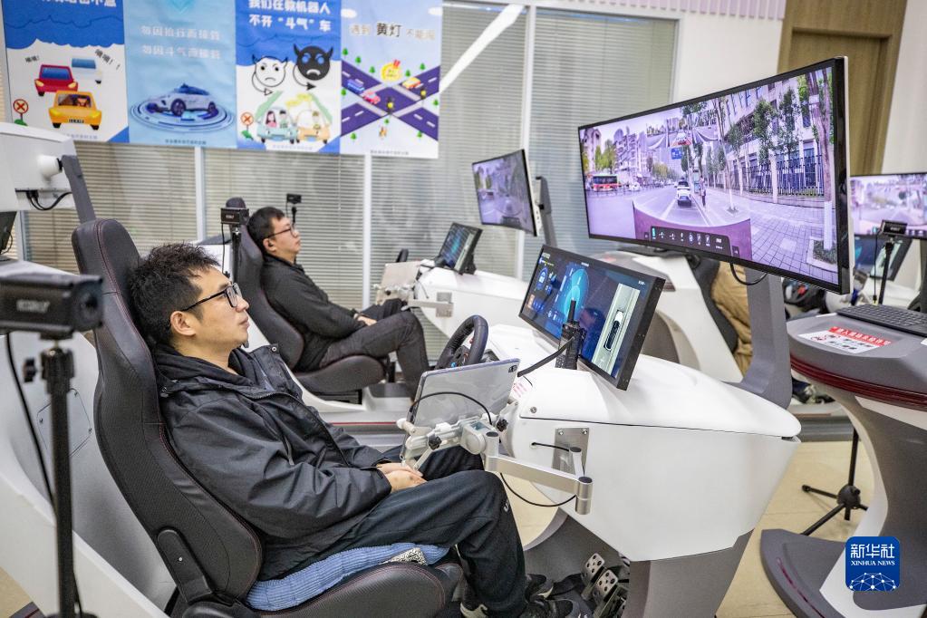 2月23日,在重慶云谷·永川大數據產業園百度智行信息科技(重慶)有限公司,員工們通過5G云代駕艙遠程實時監控運行中的車內無安全員的自動駕駛車輛,確保車輛運行安全。