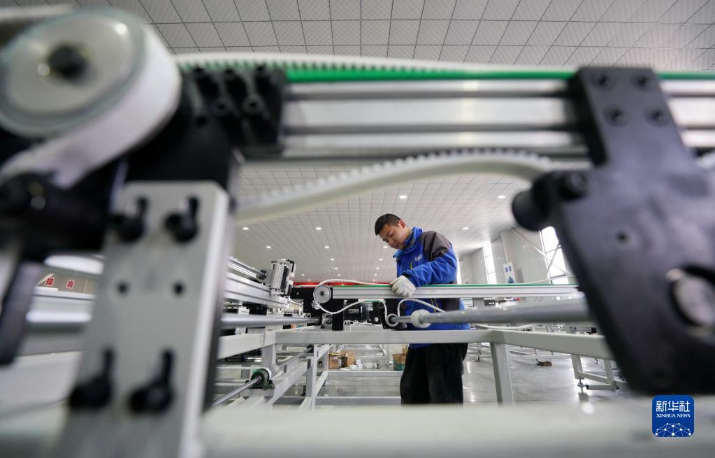 3月3日,河北省威縣一家光伏設備制造企業的工人在組裝產品。