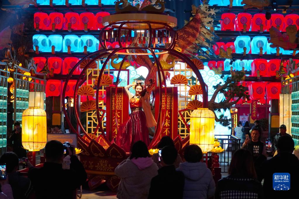 2月27日晚,游客在位于山東省東平縣的大宋不夜城觀看表演。大宋不夜城是山東省東平縣集古鎮風情與宋文化街區于一體的全新旅游項目。大宋不夜城從今年1月7日正式向游客開放以來,已吸引游客超過110萬人次,對繁榮夜經濟、拉動消費起到有效促進作用。