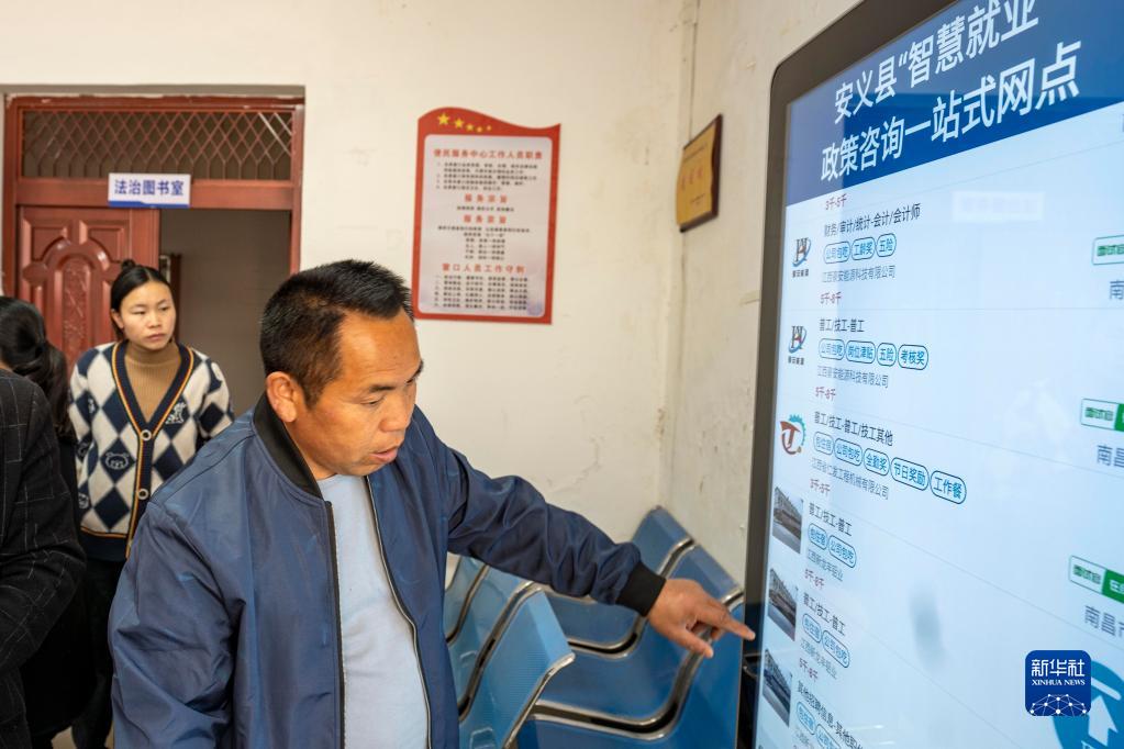 近年來,江西省南昌市安義縣引進“村頭寶”智慧就業終端平臺?!按孱^寶”平臺采用“互聯網+就業”服務平臺模式,在求職者尋求到合適職位時,可直接與企業人事進行現場視頻面試。截至目前,安義縣已為喬樂鄉馬溪村等20余個行政村配備了“村頭寶”平臺,80多家企業入駐“村頭寶”,提供崗位數2.6萬次。