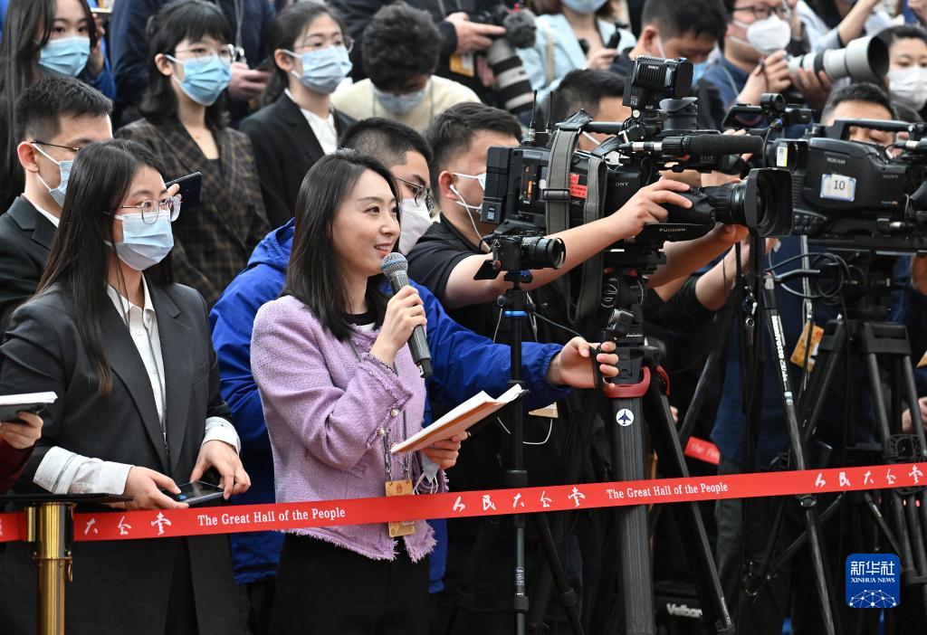 3月5日,第十四屆全國人民代表大會第一次會議舉行首場“部長通道”采訪活動。這是新華社記者在采訪。新華社記者 劉金海 攝