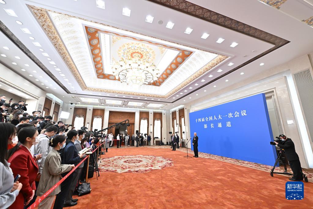 3月5日,第十四屆全國人民代表大會第一次會議舉行首場“部長通道”采訪活動。新華社記者 劉金海 攝