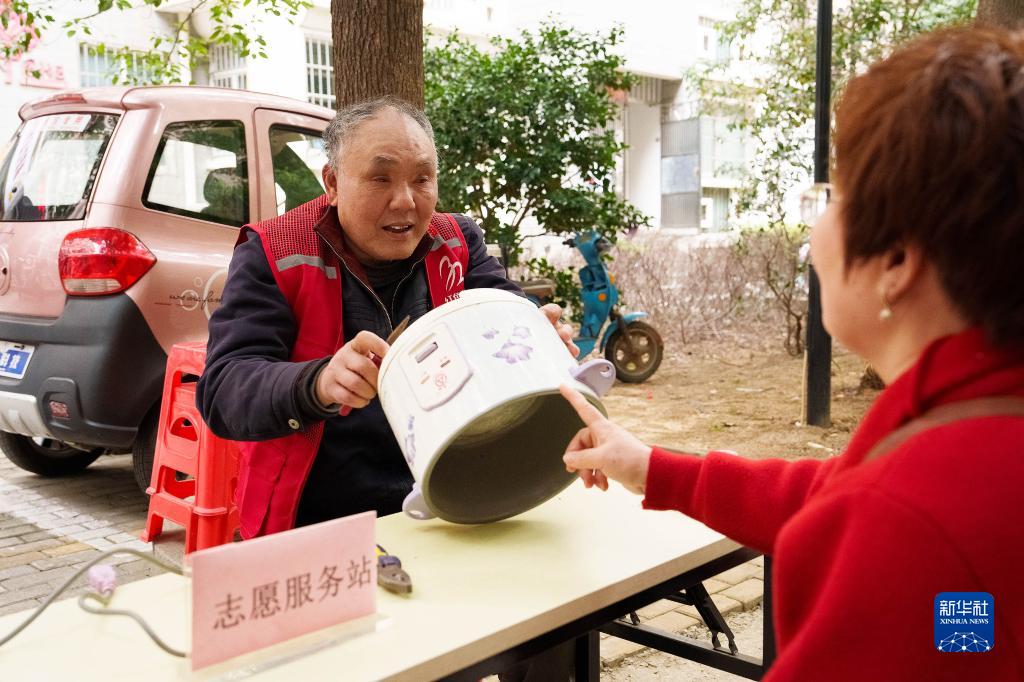 “小桔燈”服務社的志愿者在南昌市青云譜區徐家坊街道錦聯社區開展小家電維修等志愿服務(3月3日攝)。