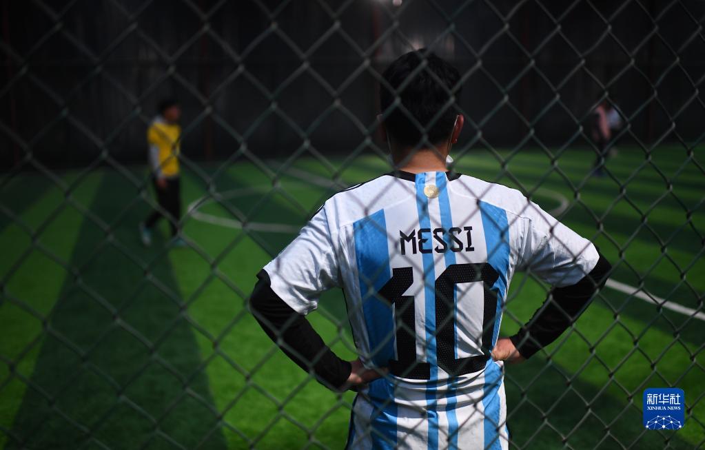 3月2日,在玉樹州玉樹市一處室內球場,一名足球愛好者在場邊休息。