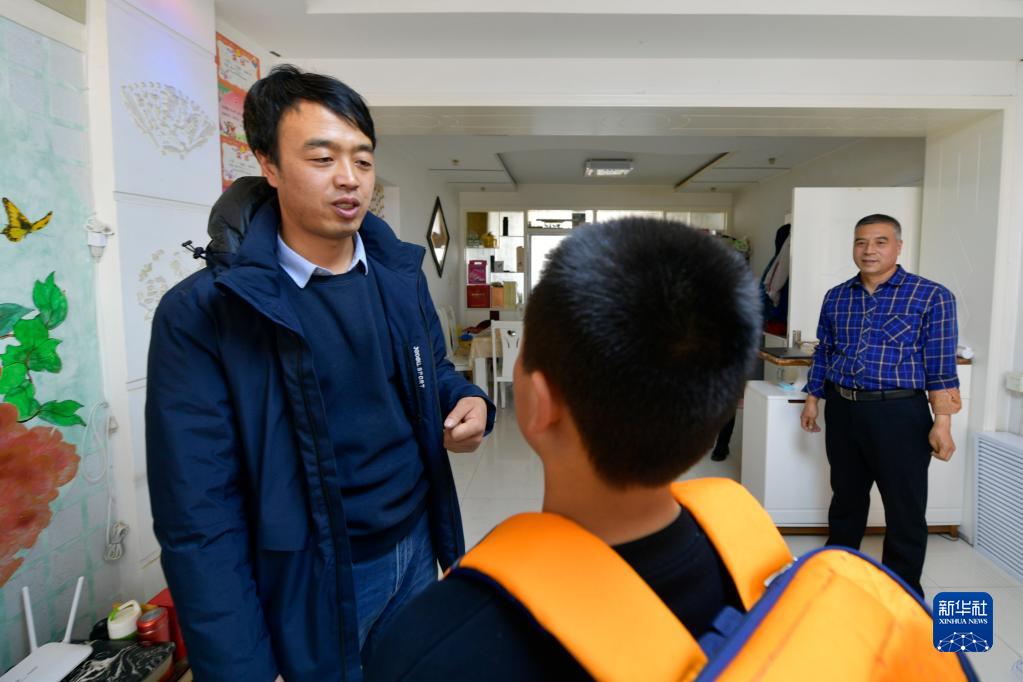 3月4日,劉富強(左一)在嘉峪關一小區看望公益協會幫扶的一名兒童。