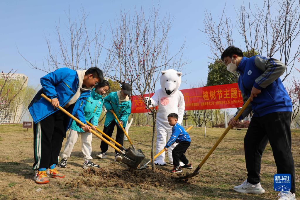 當日,合肥市包河區濱湖世紀社區聯合轄區消防工作人員在雨水公園開展“手牽手護綠一起行”義務植樹活動,綠化家園。