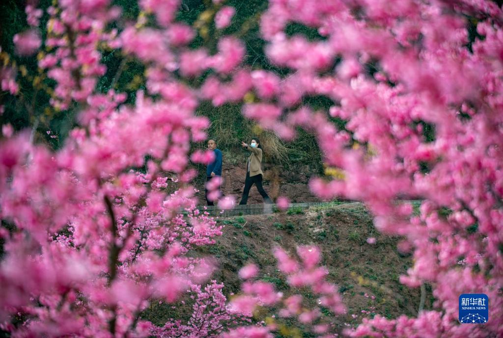 3月5日,兩名游客在馬龍區沈家山櫻花谷觀光游覽。