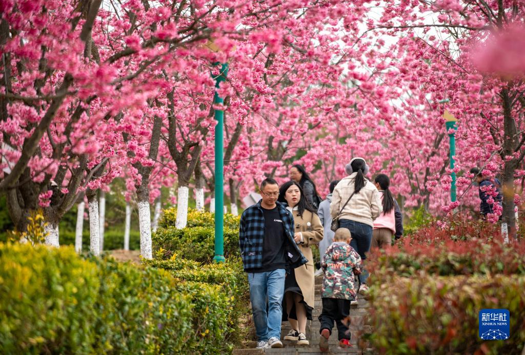 3月5日,游客在馬龍區沈家山櫻花谷觀光游覽。