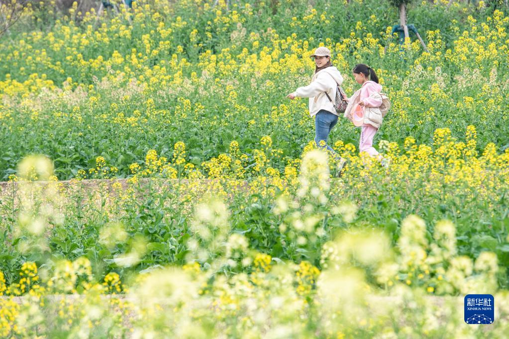 近日,重慶市兩江新區水土高新科技園“兩江田園牧歌”景區內,油菜花競相綻放,吸引人們踏春賞花,感受春日之美。