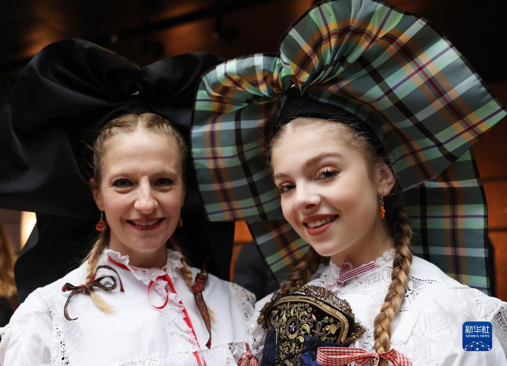3月5日,在法國東部城市斯特拉斯堡,當地民眾身著阿爾薩斯地區的民族服裝歡迎前來參加2023《米其林指南》法國版發布活動的廚師和嘉賓。這是《米其林指南》首次在阿爾薩斯地區發布。