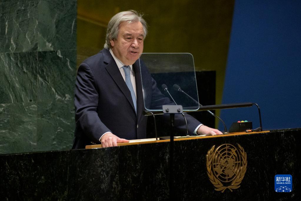 3月6日,在位于紐約的聯合國總部,聯合國秘書長古特雷斯在聯合國婦女地位委員會第67屆會議開幕式上致辭。