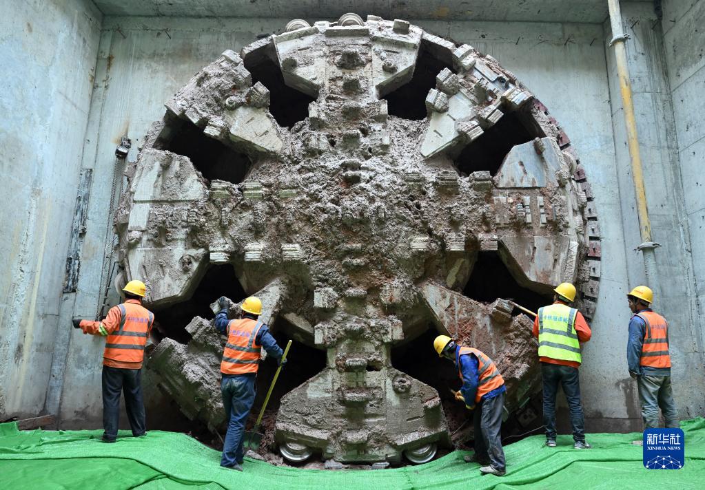 3月7日,在合肥軌道交通4號線南延線萬佛山路站至明珠大道站區間中間風井,工作人員對破洞而出的盾構機進行清理。