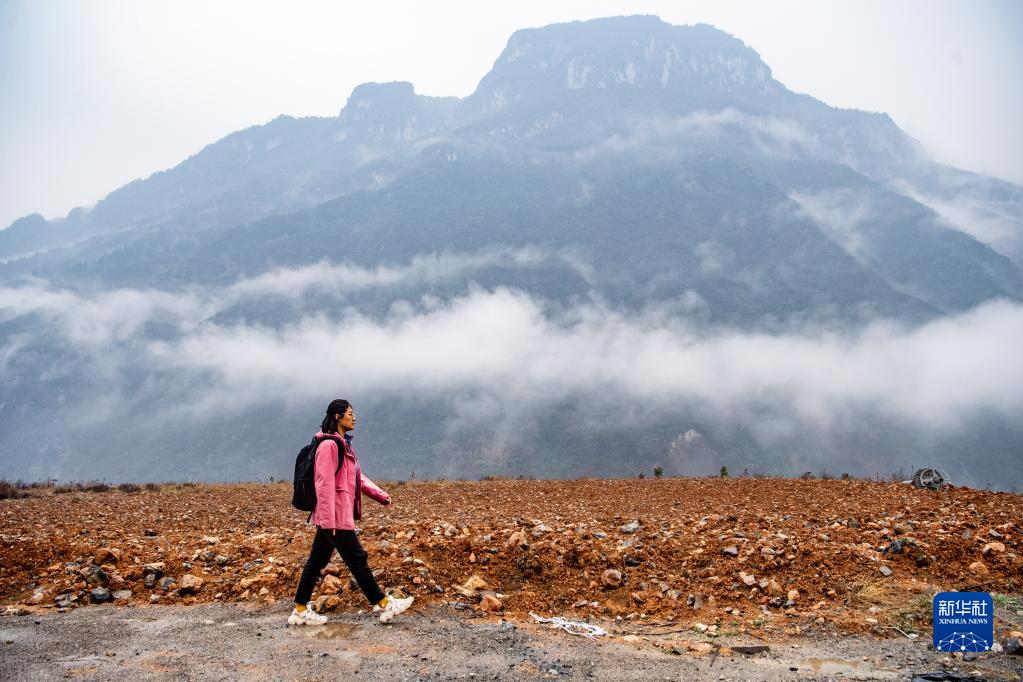 2023年3月6日,在位于重慶市武隆區的白馬航電樞紐文物保護項目現場,女子考古隊隊長燕妮在進行前期踩點工作。