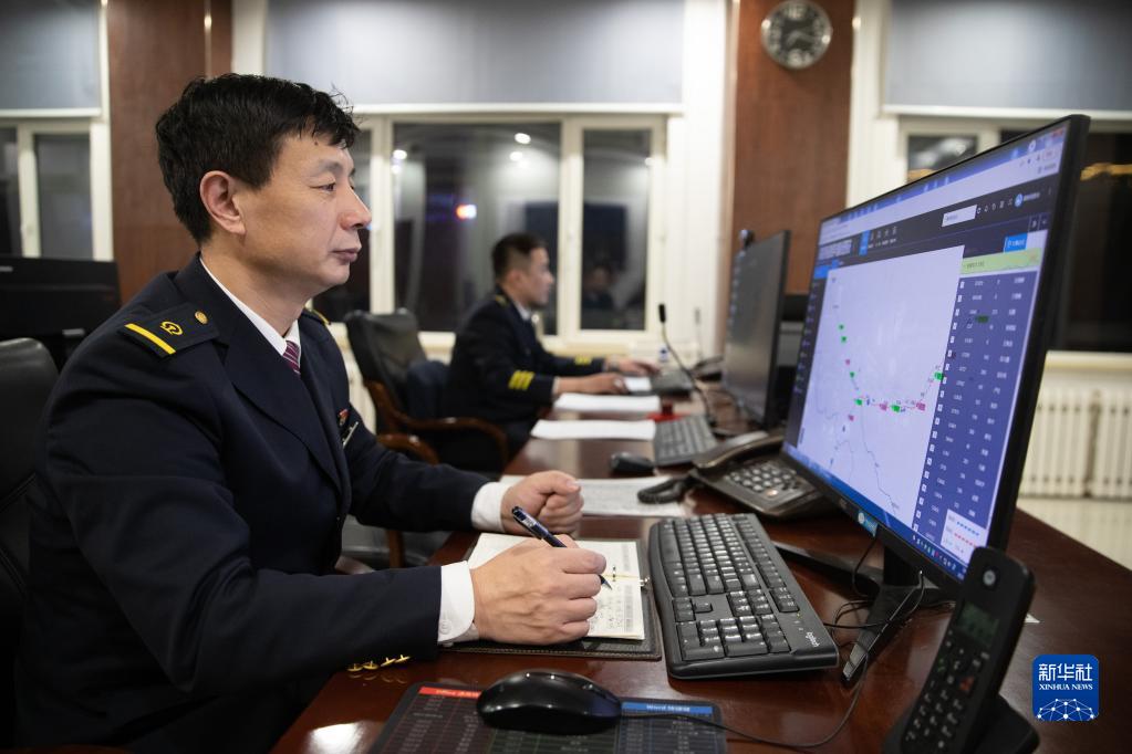 邢云堂在中國鐵路哈爾濱局集團有限公司三棵樹機務段動車運用車間應急指導中心值班(2月18日攝)。