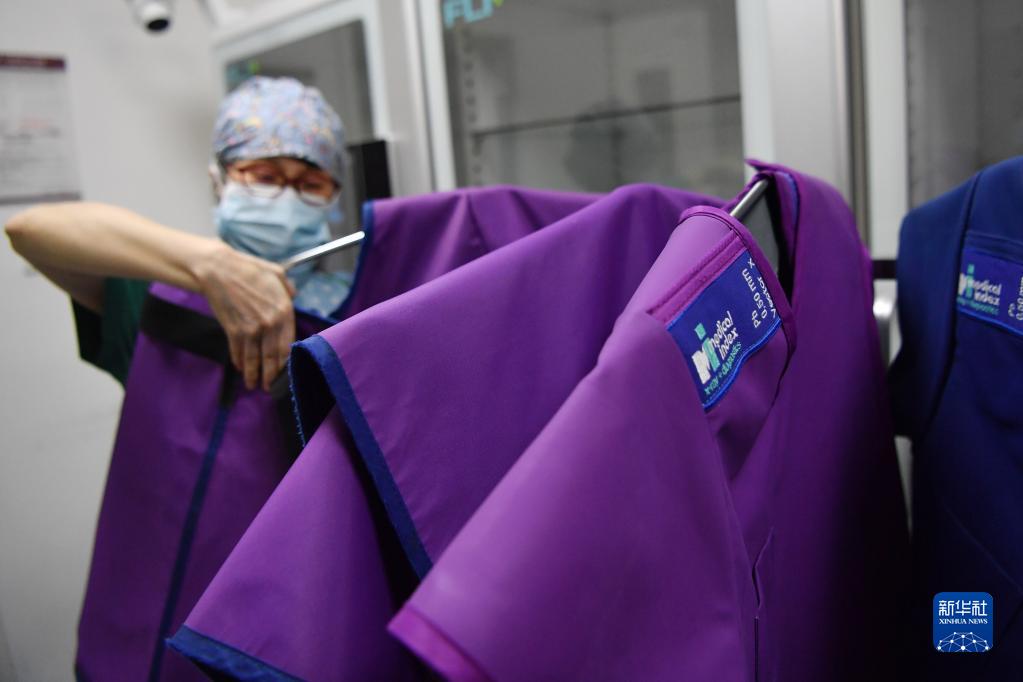 3月6日,馬娜準備穿鉛衣為患者手術。