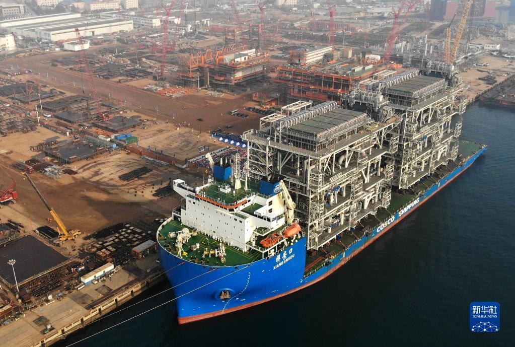 當日,由中國海洋石油工程股份有限公司承建的又一超大型國際能源裝備——加拿大LNG(液化天然氣)項目的最后兩個核心模塊在青島場地完工裝船,至此,該項目中由我國承建的模塊全部順利交付。
