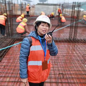3月7日,中鐵八局女職工劉獻英(左一)在施工現場登記人員信息。