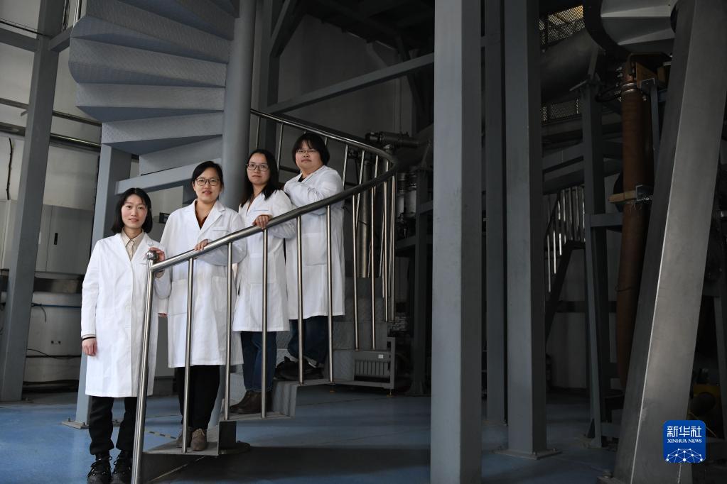 3月3日,中科院合肥物質科學研究院強磁場科學中心高級工程師唐佳麗(右二)與同事在穩態強磁場實驗裝置旁合影。