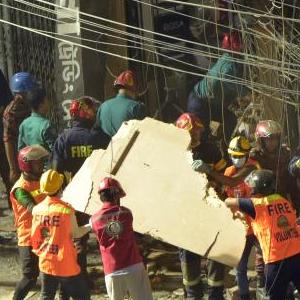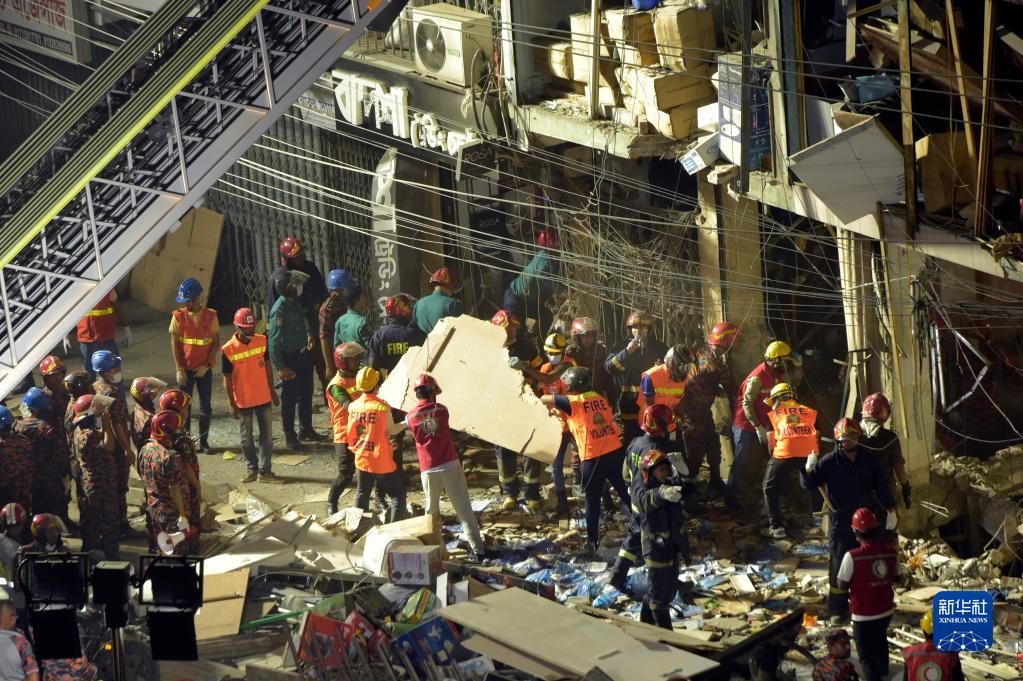 3月7日,在孟加拉國首都達卡,救援人員在爆炸現場工作。