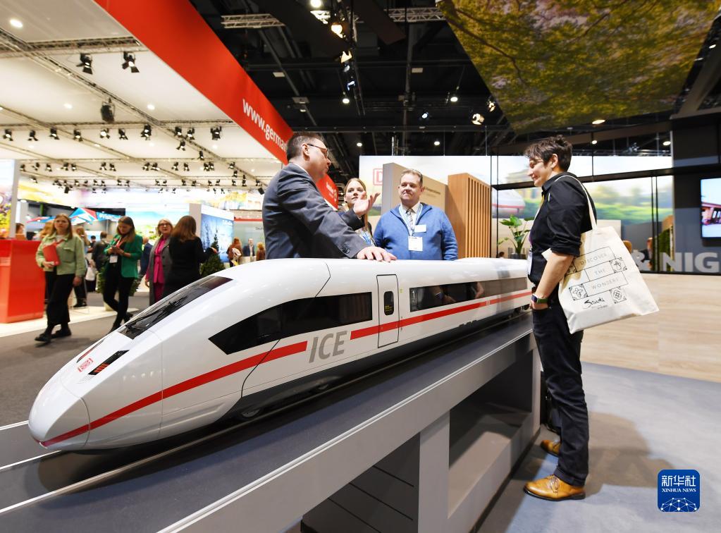 3月7日,人們在德國柏林舉行的柏林國際旅游交易會德國鐵路公司展區交流。