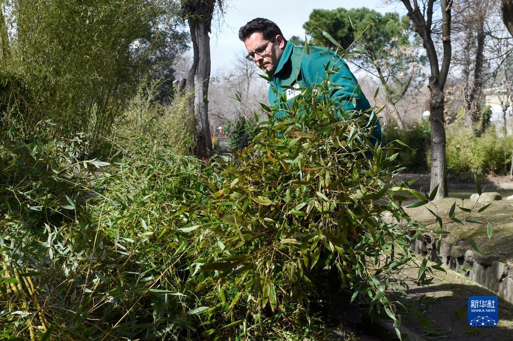 3月7日,大熊貓飼養員亞歷杭德羅·卡布雷拉在西班牙馬德里動物園工作。