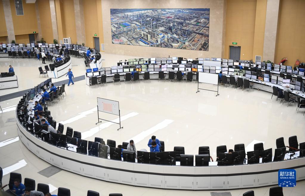 3月7日拍攝的中國石油廣東石化煉化一體化項目的煉油區控制室。